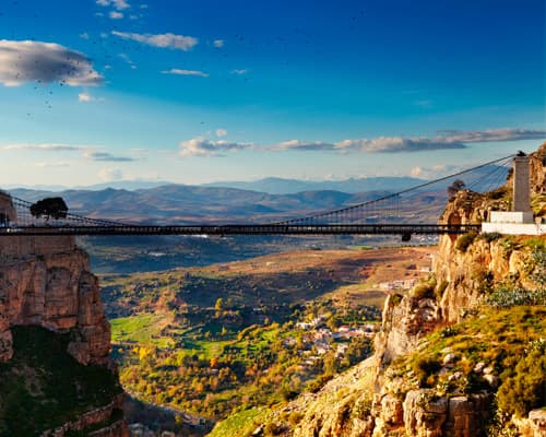 Constantine este un oraș în nord-estul Algeriei. Orașul este înconjurat de o prăpastie adâncă și are un aspect dramatic. Orașul este foarte pitoresc, cu un număr de poduri și un viaduct care traversează prăpastia. Există mai multe poduri în Constantine, dar cel suspendat este cel mai spectaculos. Vederea arcului natural de dedesubt este ceva ce te captivează. Doar pentru acel pod, vizita în Constantine este justificată. Alte atracții din oraș sunt Moscheea Ben-Badis, Casbah, Mausoleul Soumma, Palatul lui Ahmed Bey și ruinele acvaductului roman Antonian.